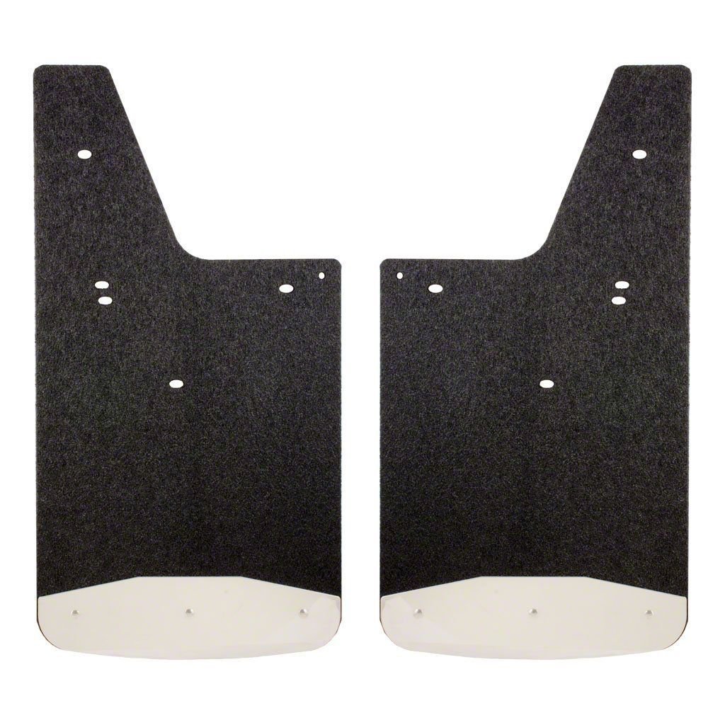 Whether you're on the job or off-roading through the wilderness, it doesn't take long for rocks and other debris to wreak havoc on the body of your truck. LUVERNE Textured Rubber Mud Guards are the perfect solution for maintaining that pristine, professional look. For the front or rear of the truck, these custom mud flaps add style and body protection. They are constructed from heavy-duty black rubber that stands up to road debris and sheds water with ease. They feature 18-gauge stainless steel plates to help protect the bottom edge and extend the life of the mud flaps. With their 3/8" thick, recycled rubber construction, Textured Rubber Mud Guards easily deflect everything from mud to gravel, protecting the body of your truck from scratches, chips and scuffs. They are also made to add a stylish accent to your truck, featuring stainless steel plates along the bottom edge of each flap. The plates are made from 18-gauge stainless steel to provide a heavy-duty, rust-resistant shield, and they feature a bright, high-polish finish for a long-lasting shine. The textured finish of the rubber mud flaps is also designed to easily hide minor scuffs and scratches and maintain a clean appearance. For an easy installation and a custom fit, these truck mud flaps are made vehicle-specific. This particular set fits specific years of the Nissan Titan and Titan XD (see application info to verify fitment). They install with corrosion-resistant fasteners and high-strength steel mounting brackets with a galvanized finish for long-lasting durability. Universal mud flaps are also available.