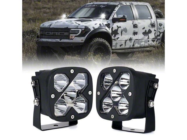 Compact and Bright. Made for a universal fit, these LED Light Pods come in pairs with a matte black housing and clear lenses. Built to output bright white light, these are 3 inch square light pods that offer a compact way to illuminate your journey during nighttime or bad weather.