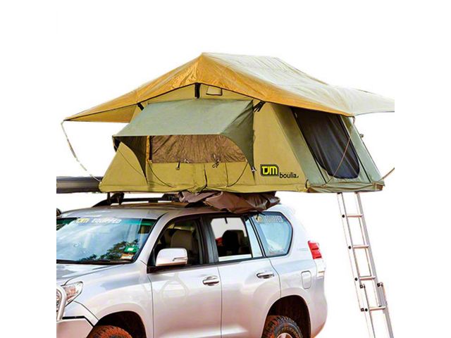 Description. TJM roof top tents and awnings are ready within minutes, so you can relax and enjoy the great outdoors. There's plenty to love about highset camping where the views are better and less sand gets transported into your tent. Not to mention extra security, and with our abundant wildlife this can make for a more restful nights sleep. Manufactured from long-lasting poly/cotton breathable fabric, the Boulia roof top tent is mould resistant, waterproof and fits neatly onto the roof of your 4x4. Access is easy, with the included aluminium retractable ladder. No need to worry about inflating air mattresses either, as a 65mm high-density foam mattress with a removable cover is also included. The Boulia features fully screened windows and doors, and a pull-out veranda. To get even more space add an optional TJM zip-on annexe.