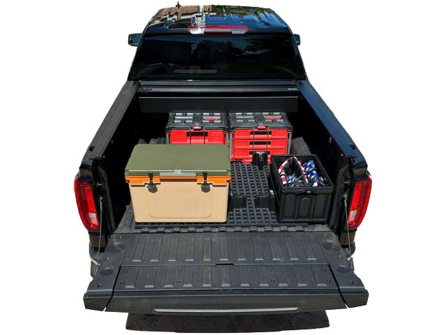 Cargo Security. The Tmat Truck Bed Mat and Cargo Management System ensures that your cargo stays in place while driving. It includes 2 solid blockers and 2 adjustable blockers to arrange around your tools and equipment, preventing sliding and movement. The blockers hold cargo of varying lengths and block lateral movement, providing versatile cargo management options.