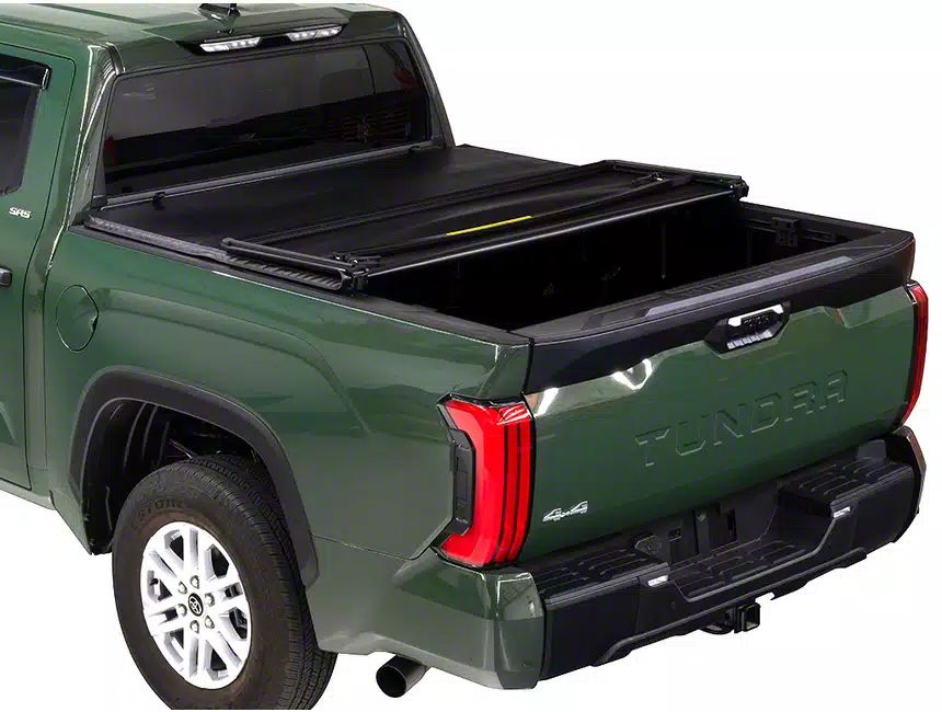 Sleek Protection and Easy Bed Access. Discover the perfect blend of functionality and style with the Tonno Pro TonnoFold Soft Tonneau Cover. This low-profile cover offers quick and easy access to your truck bed, making loading and unloading a breeze. It's designed to safeguard your cargo from the elements while enhancing your vehicle's aesthetic appeal. The cover also contributes to improved fuel efficiency by reducing aerodynamic drag, making it an ideal choice for truck owners who value both protection and performance.