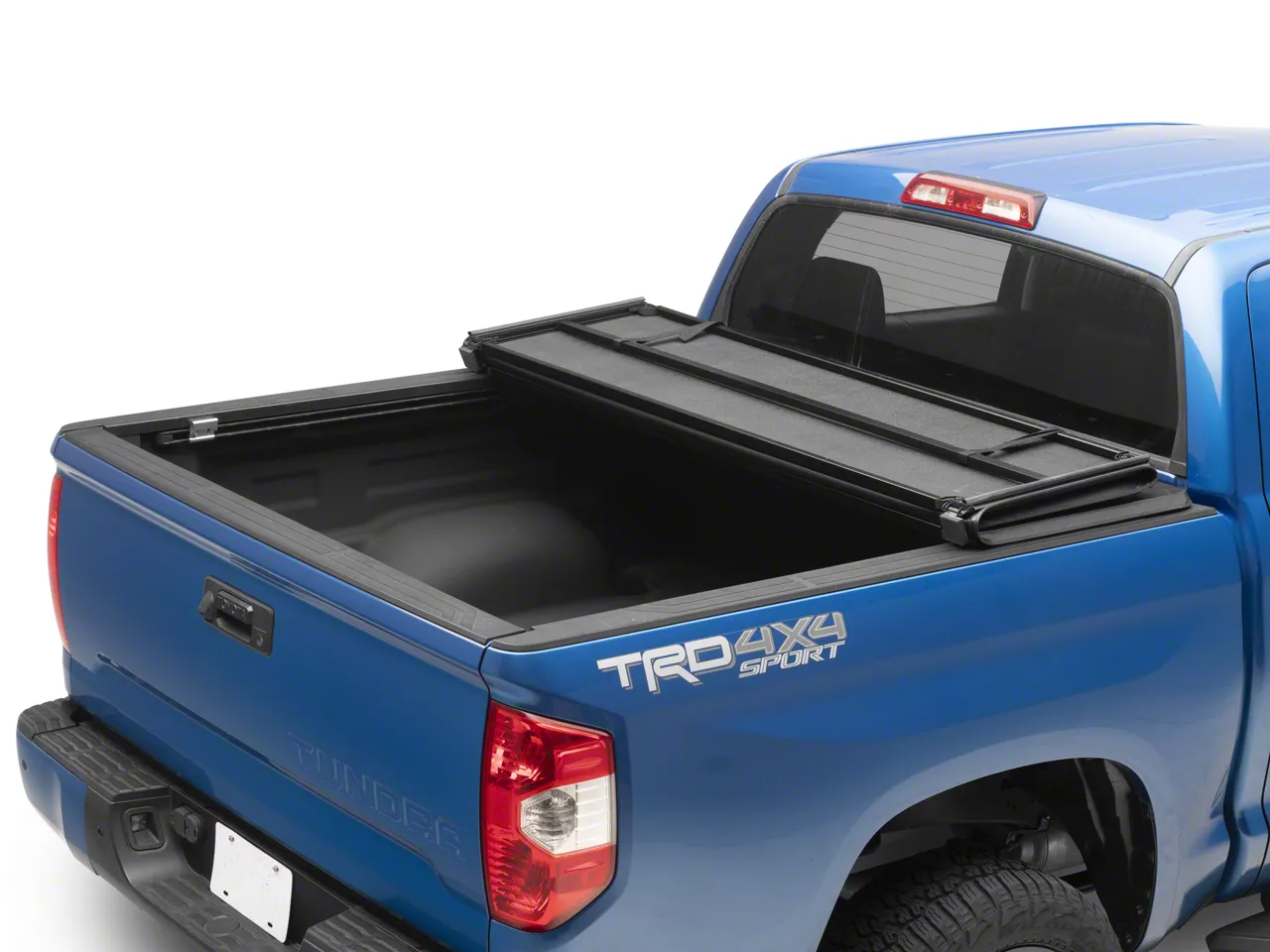 Simple, Effective Truck Bed Protection. Get this Tonno Pro Hard Fold Tonneau Cover for your Tundra to give your truck bed and cargo ample protection from the elements. It’s both stylish and practical, combining the toughness of a hard cover and the classy looks of a soft cover. Moreover, this tonneau cover gives your truck a clean-looking, aerodynamic profile. This helps reduce wind drag so your Tundra won’t get bogged down.