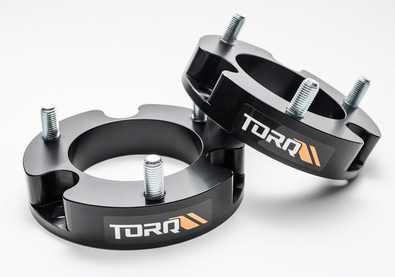 Precision Lift. The Torq Engineering Leveling Kit raises the front of 2016-2023 Toyota Tacoma TRD Pro models by 2 inches to deliver a balanced, aggressive stance. This direct replacement kit installs spacers in the front suspension to achieve the desired lift without altering ride quality. The glossy black finish enhances under-hood appearance while maintaining a factory-inspired look.