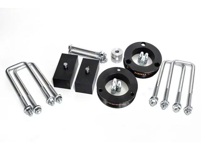 Level Your Stance While Preserving Ride Comfort. This kit raises the front by 3 inches and the rear by 2 inches, correcting factory rake for a level appearance and accommodating larger tires. By using torsion-key spacers up front and axle perch blocks in the back, it maintains OEM suspension geometry and ride quality, ensuring predictable handling without harshness.