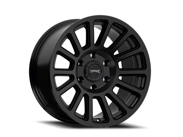 The 17x8.5 Torque Wheels TW413R Trek Satin Black 6-Lug Wheel; 17x8.5; -12mm Offset is completed in a high-quality satin black finish, which will be sure to turn heads. For added durability and appearance, there is a durable clear coat that withstands the rigors of the road.