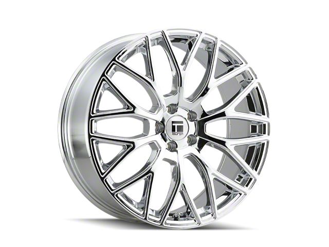 Touren TR76 Chrome 5-Lug Wheel; 18x8; 35mm Offset is a perfect blend of style and rugged design, making it a standout choice for those looking to enhance their vehicle's aesthetic appeal. Its bold, dark metallic finish pairs seamlessly with a wide variety of vehicle styles, offering both modernity and durability. Built by Touren, this wheel is designed to elevate your vehicle's appearance with its robust presence.