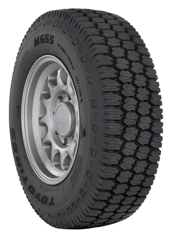 Built tough for severe duty, the M655 commercial grade light truck tire provides confident traction under heavy loads for mining, energy, agriculture, construction, and forestry use. It has a sturdy sidewall, a cut-and-chip resistant cap compound, and a heat-resistant base compound that withstands stresses under load on unimproved roads. A deep tread and flat crown radius reduce irregular wear, while the groove and notch design protect the casing from stone damage. Plus, it carries the Three-Peak Mountain Snowflake designation for traction in snow and ice.