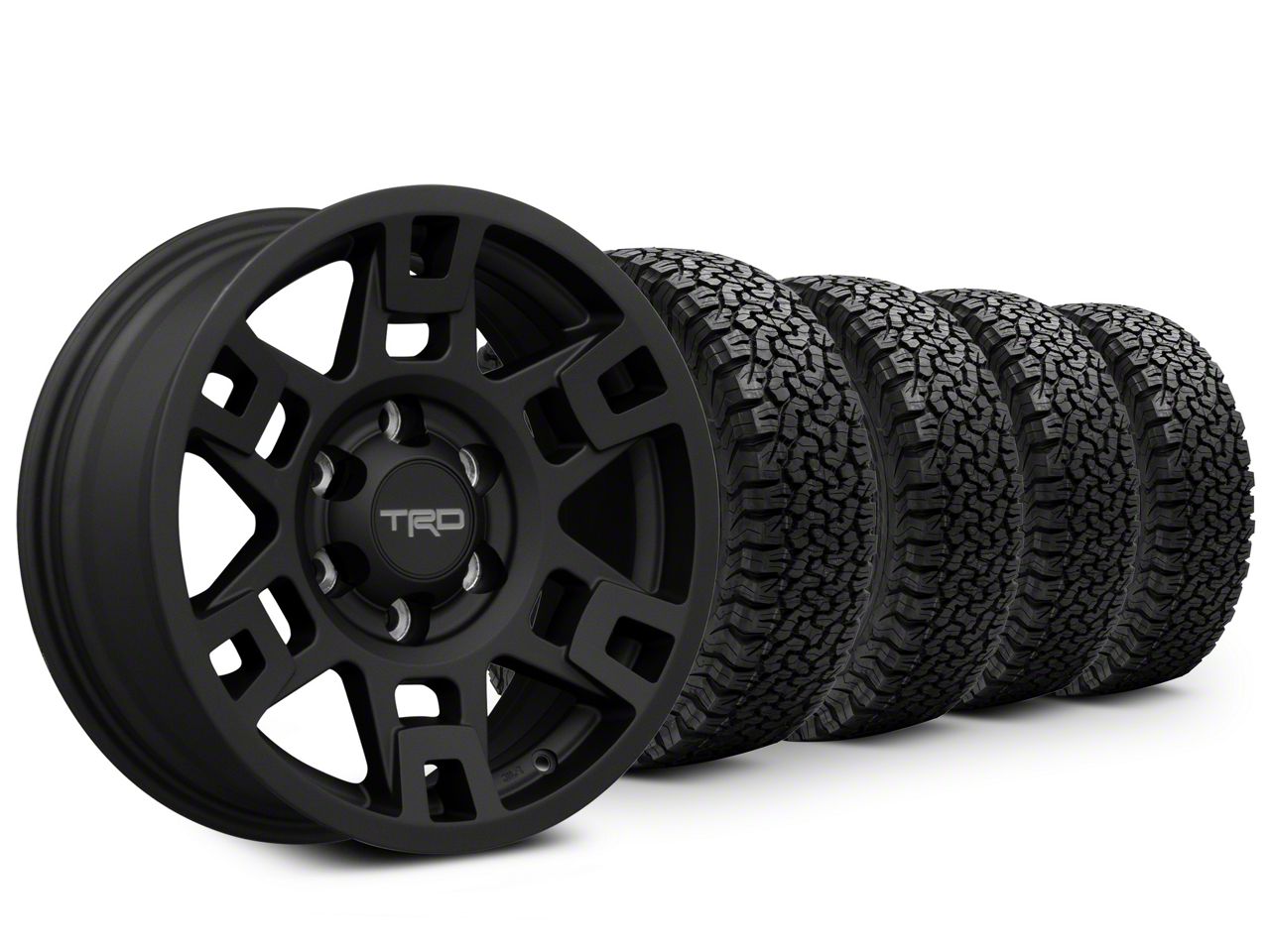 Mounted and Balanced Wheel and Tire Kit. This wheel and tire combo kit features (4) 17x7 TRD 4Runner Matte Black 6-Lug Wheels and (4) BF Goodrich All-Terrain T/A KO 285/70R17 tires that have been put together into an easy to buy kit that arrives to your door already mounted and balanced ready to be installed on your vehicle.