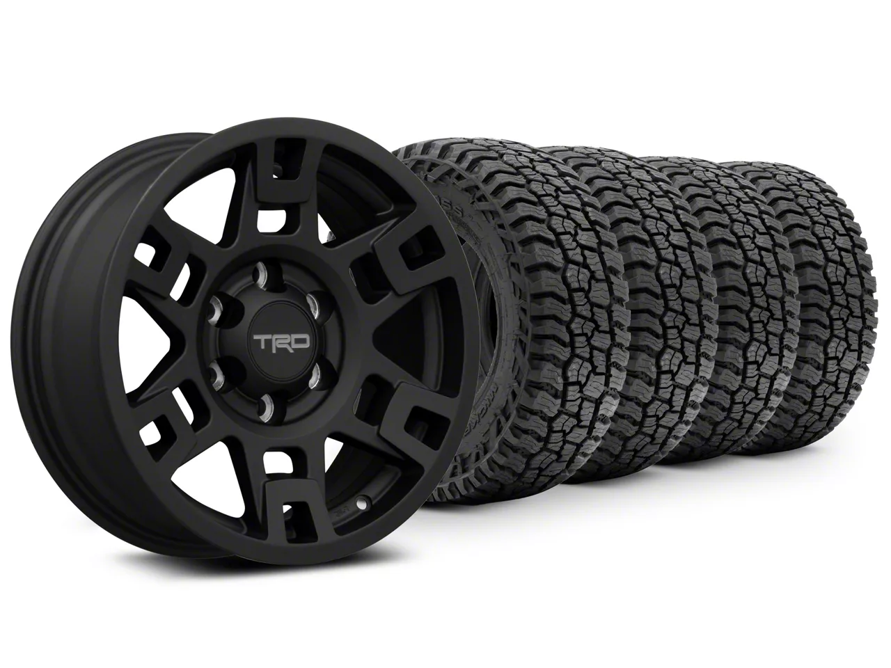 Mounted and Balanced Wheel and Tire Kit. This wheel and tire combo kit features (4) 17x7 Toyota TRD 4Runner Matte Black 6-Lug Wheels and (4) Mickey Thompson All-Terrain Baja Boss A/T 33" - 285/70R17 tires that have been put together into an easy to buy kit that arrives to your door already mounted and balanced ready to be installed on your vehicle.