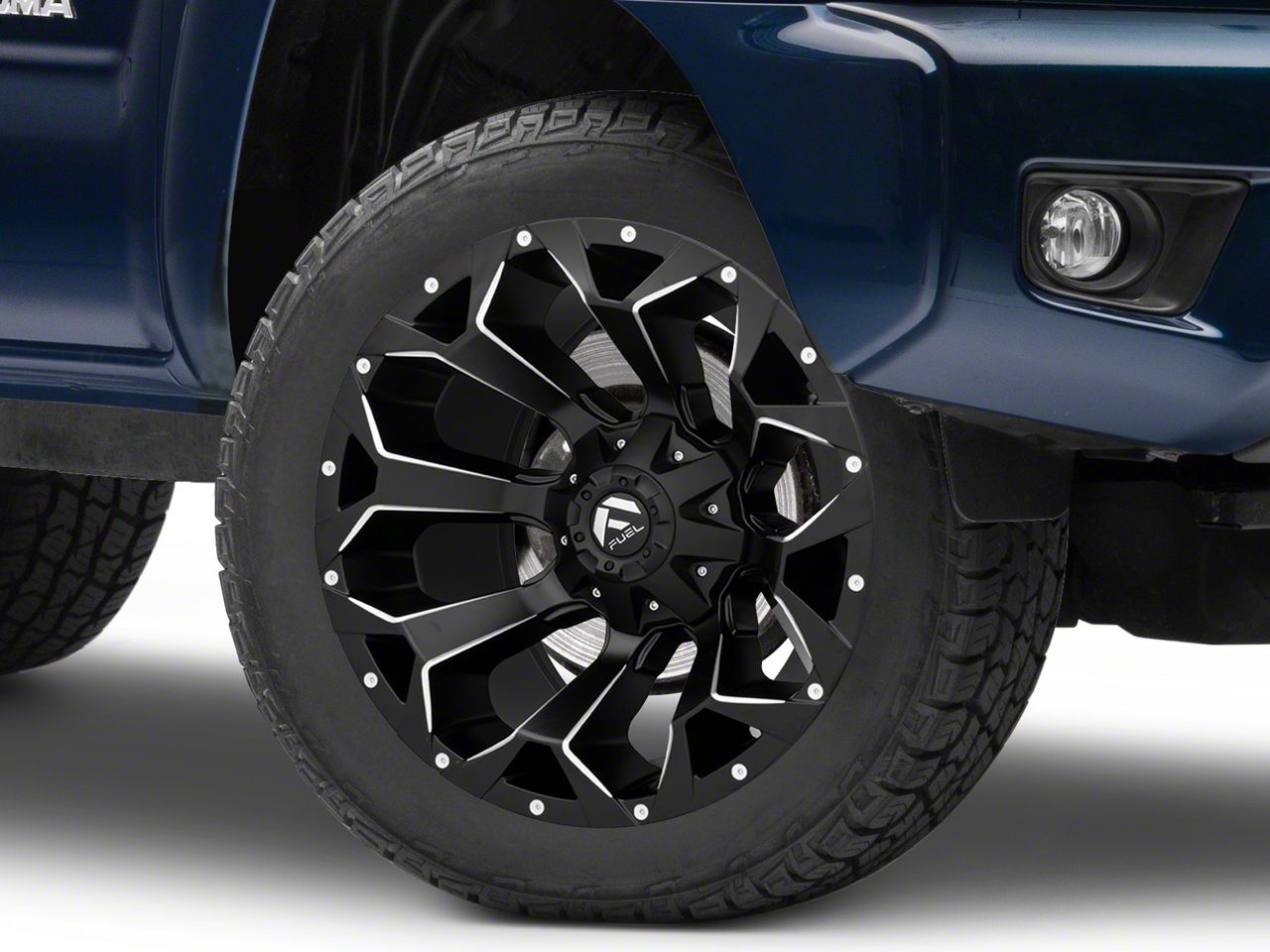 Application. This Fuel Wheels Assault Satin Black Milled 6-Lug Wheel; 20x10; -22mm Offset with a backspace of 4.634 Inch, 117.7mm; and bolt pattern of 6 x 139.7mm (6 x 5.5-Inch), contributes to alignment, driving stability, and ensures a perfect fit with the vehicle model. Designed to fit the 2005-2015 Tacoma. Sold individually.