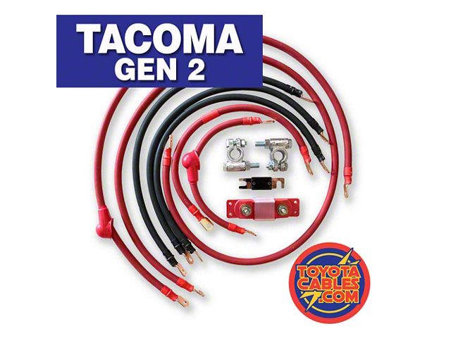 Application. This ToyotaCables Tacoma Big 7 Battery Cable Kit (1/0GA) fits 2005-2015 Toyota Tacoma models equipped with the 2.7L engine.