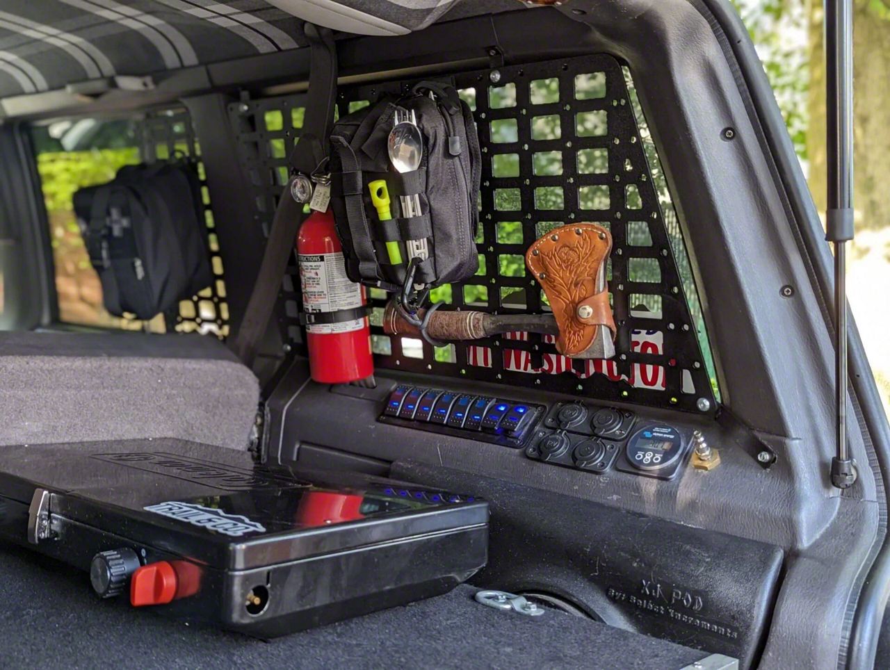 Maximizes Storage. Transform the functionality of your Jeep Cherokee XJ 4-Door with the Trail & Co Trunk Window MOLLE Panel. This innovative accessory is designed to maximize the storage capacity of your vehicle, allowing for efficient organization and quick access to your gear.