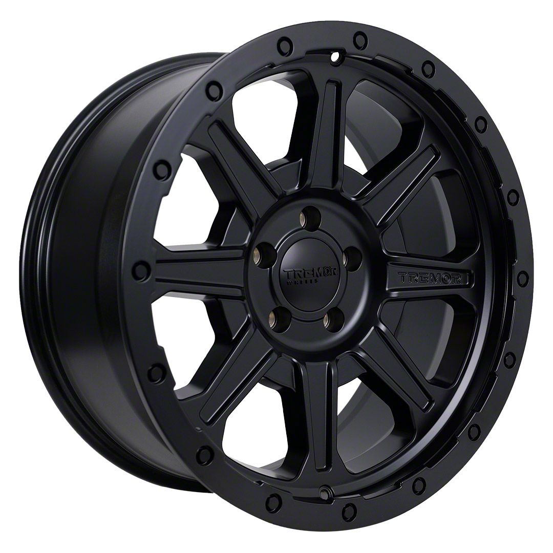 Tremor Wheels 103 Impact Satin Black 6-Lug Wheel; 20x9; 0mm Offset exudes sophistication with its finish, offering a sleek and modern appeal to any vehicle it adorns. The design is meticulously crafted to enhance the aesthetic of your vehicle, giving it a distinctive and upscale look. Perfect for those seeking to elevate their vehicle's style, this wheel blends seamlessly with both contemporary and classic vehicle designs, making it a versatile choice for a wide range of vehicles. Its robust construction ensures durability, making it a reliable choice for drivers who value both style and quality.