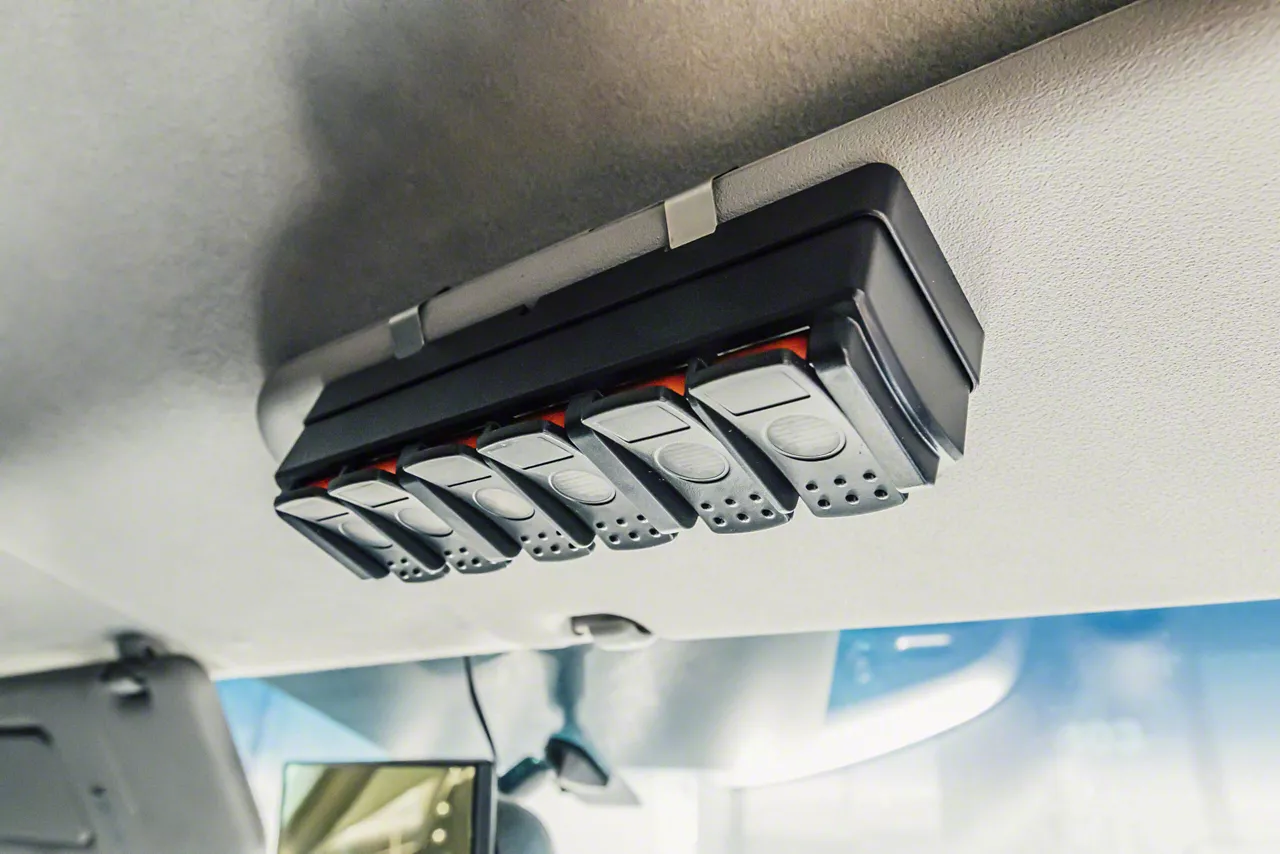 Construction and Appearance. The kit includes six wire harnesses with waterproof connectors and features back-lit buttons. LED indicators notify you of circuit status or blown fuses, ensuring you stay informed about your vehicle's electronics. The system accepts a 12 to 24-volt input and is programmable for security or use with additional controllers.