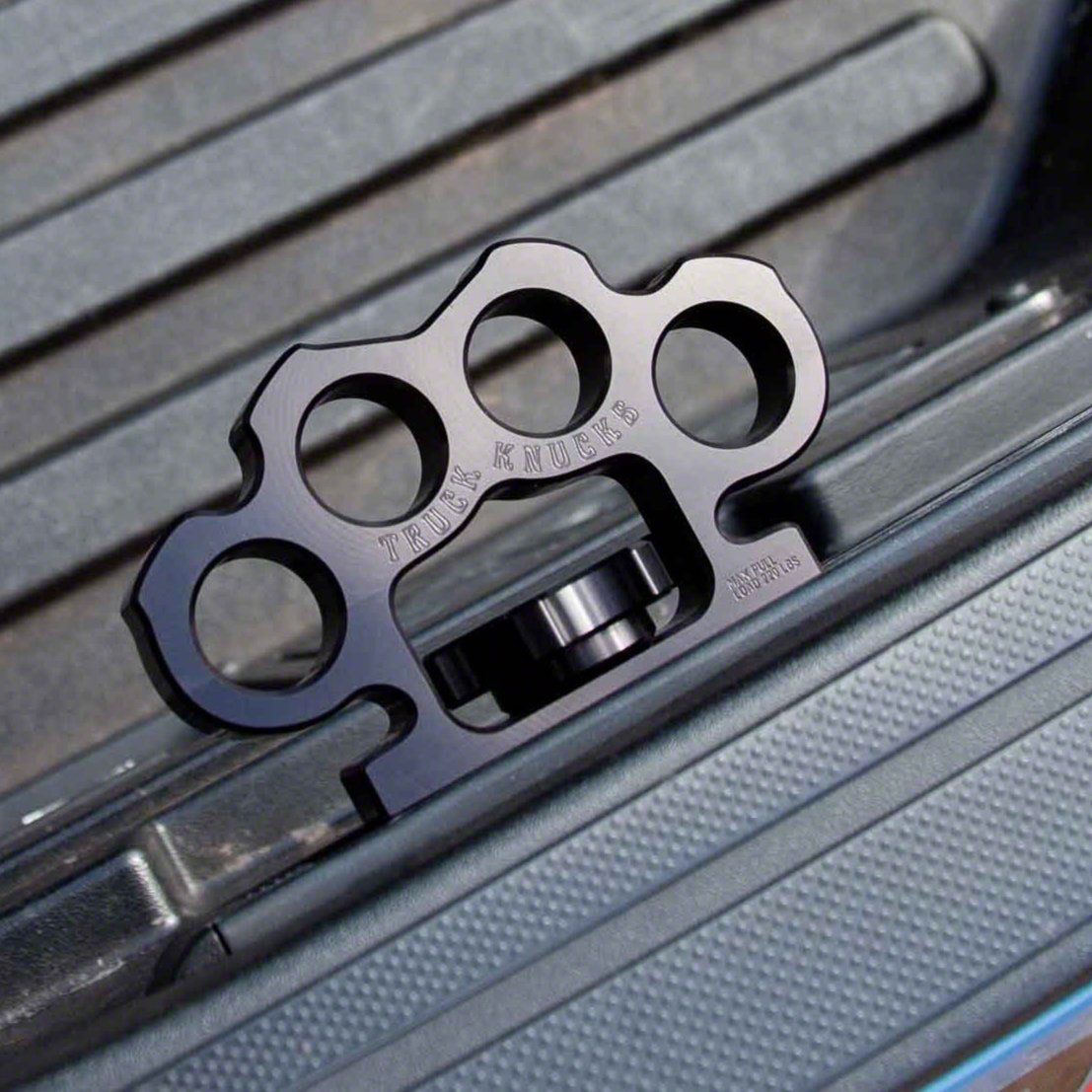 Multiple-Anchor Points. Made for the Jeep Gladiator JT, these Truck Knucks Billet Aluminum Tie-Down Cleats offer fully adjustable knuckle-shaped clamps with twist locks for additional anchor points for your ride. Crafted from CNC machined 6061 billet aluminum, these are fully adjustable and glides along your ride’s stock bed rail system.