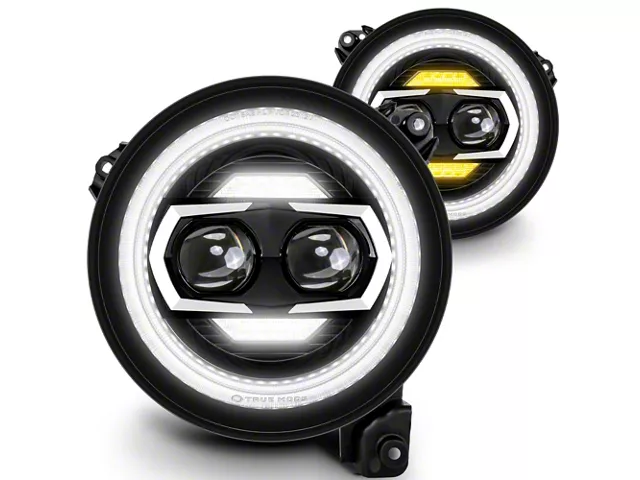 Premium Lighting Upgrade. The True Mods 9-Inch LED Halo Headlights with Turn Signals provide a modern solution for replacing outdated factory headlights. Designed to combine style with functionality, these headlights deliver bright illumination and enhanced visibility in all driving conditions. Their integrated halo design with turn signals adds both practicality and a bold look, making them an excellent choice for drivers who want reliable performance with a custom touch.