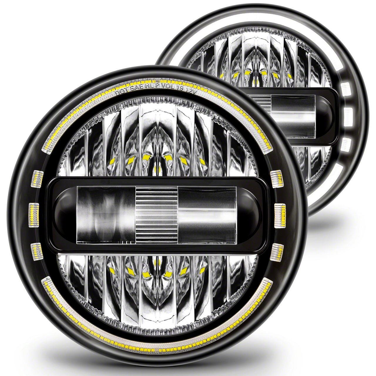 Modern Lighting Upgrade. The True Mods 7-Inch Crystal LED Halo Headlights are designed to bring superior visibility and style to your vehicle. Featuring a halo-style DRL, these headlights combine functionality with a bold modern look. The True Mods 7-Inch Crystal LED Halo Headlights fit 2007-2018 Jeep Wrangler JK models.