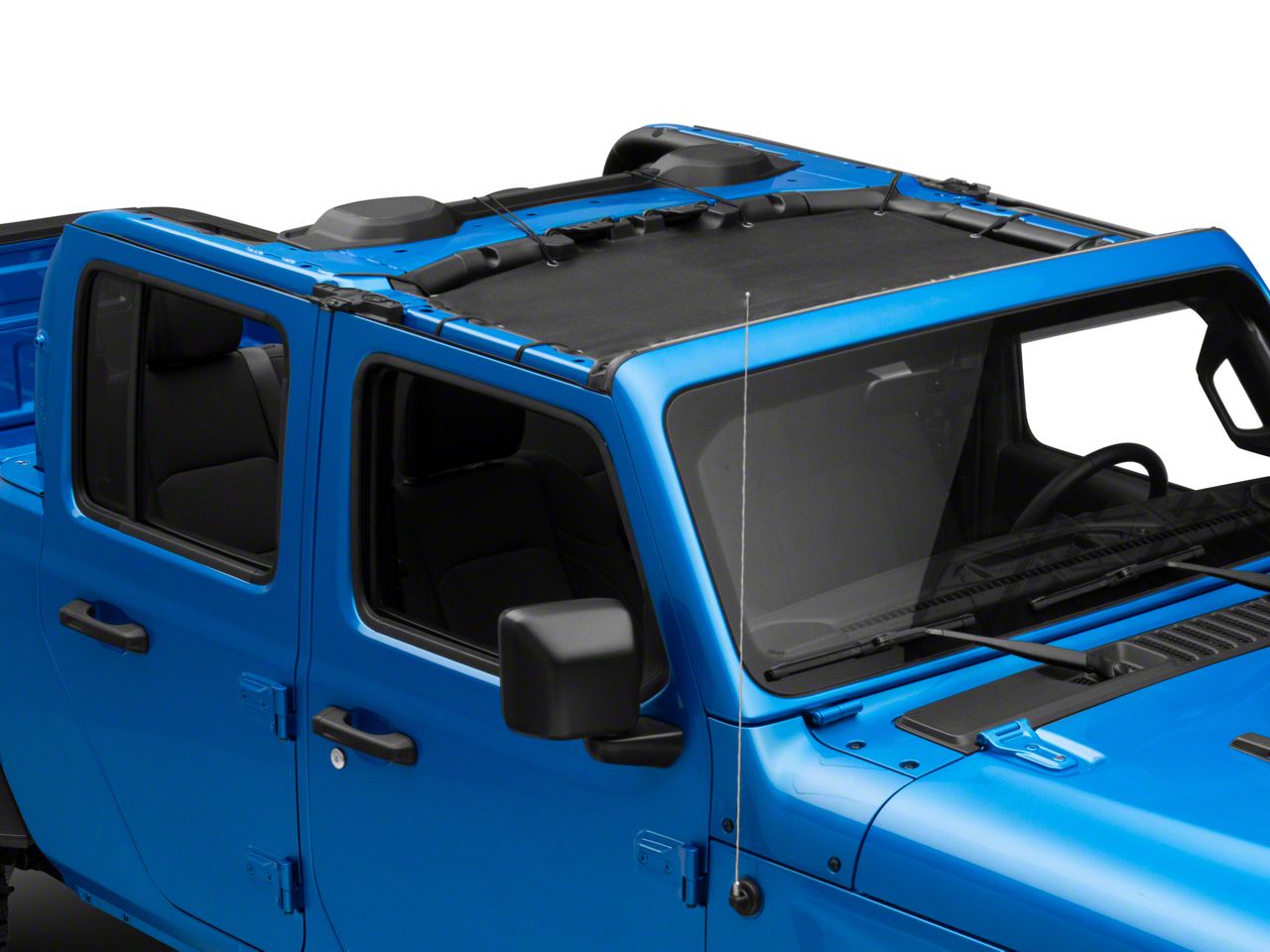 Application. This TruShield Mesh Sun Shade Top; Front is designed to fit 2020-2023 Jeep Gladiator JT models.