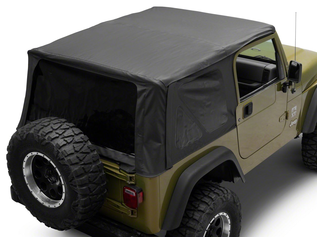 Quality Construction. This replacement Jeep Wrangler Soft Top from RedRock is manufactured from a premium black denim material to ensure reliable performance through all seasons. The Top's color is formulated to match the OE black finish for a high quality, factory like appearance. The DOT compliant tinted windows, complete the factory look while providing extra privacy from prying eyes.