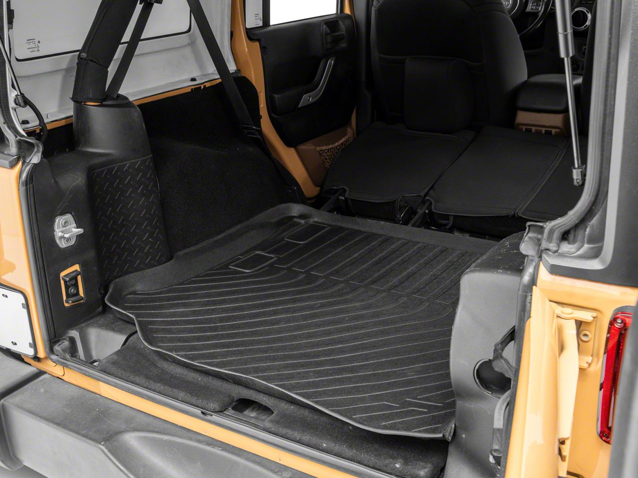 Application. This TruShield Precision Molded Cargo Liner in Black fits all 2011 to 2018 Jeep Wrangler JK 4-Door models.