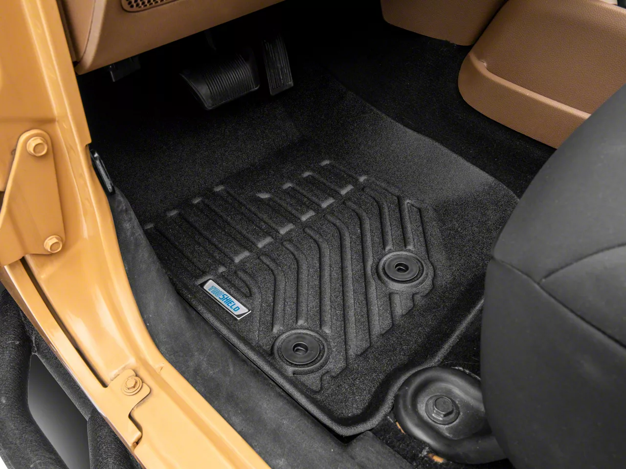 For Easy Jeep Maintenance. With these TruShield Precision Molded Front Floor Liners in Black from TruShield, maintaining the cleanliness in your Jeep Wrangler JK will be a piece of cake. Thanks to their precision molded construction, these floor liners offer full carpet coverage, so they’re capable of preventing spills, mud, snow, and other road debris from contaminating the vehicle’s floor.