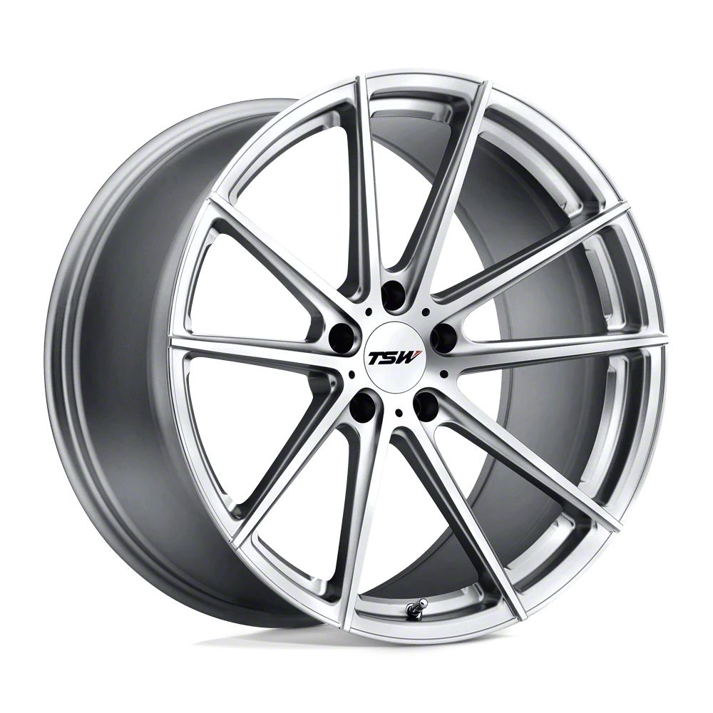TSW Bathurst Silver with Mirror Cut Face Wheel; 18x10.5 The TSW Bathurst Silver with Mirror Cut Face Wheel combines a sleek, sophisticated design with premium construction that enhances the visual appeal and complements a wide range of vehicle styles. This wheel is perfect for those seeking to make a bold statement while maintaining elegance and robustness.