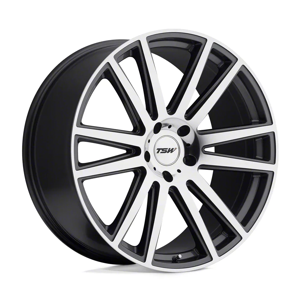 TSW Gatsby Gunmetal with Mirror Cut Face Wheel; 22x9 The TSW Gatsby Gunmetal with Mirror Cut Face Wheel combines a sleek, sophisticated design with premium construction that enhances the visual appeal and complements a wide range of vehicle styles. This wheel is perfect for those seeking to make a bold statement while maintaining elegance and robustness.