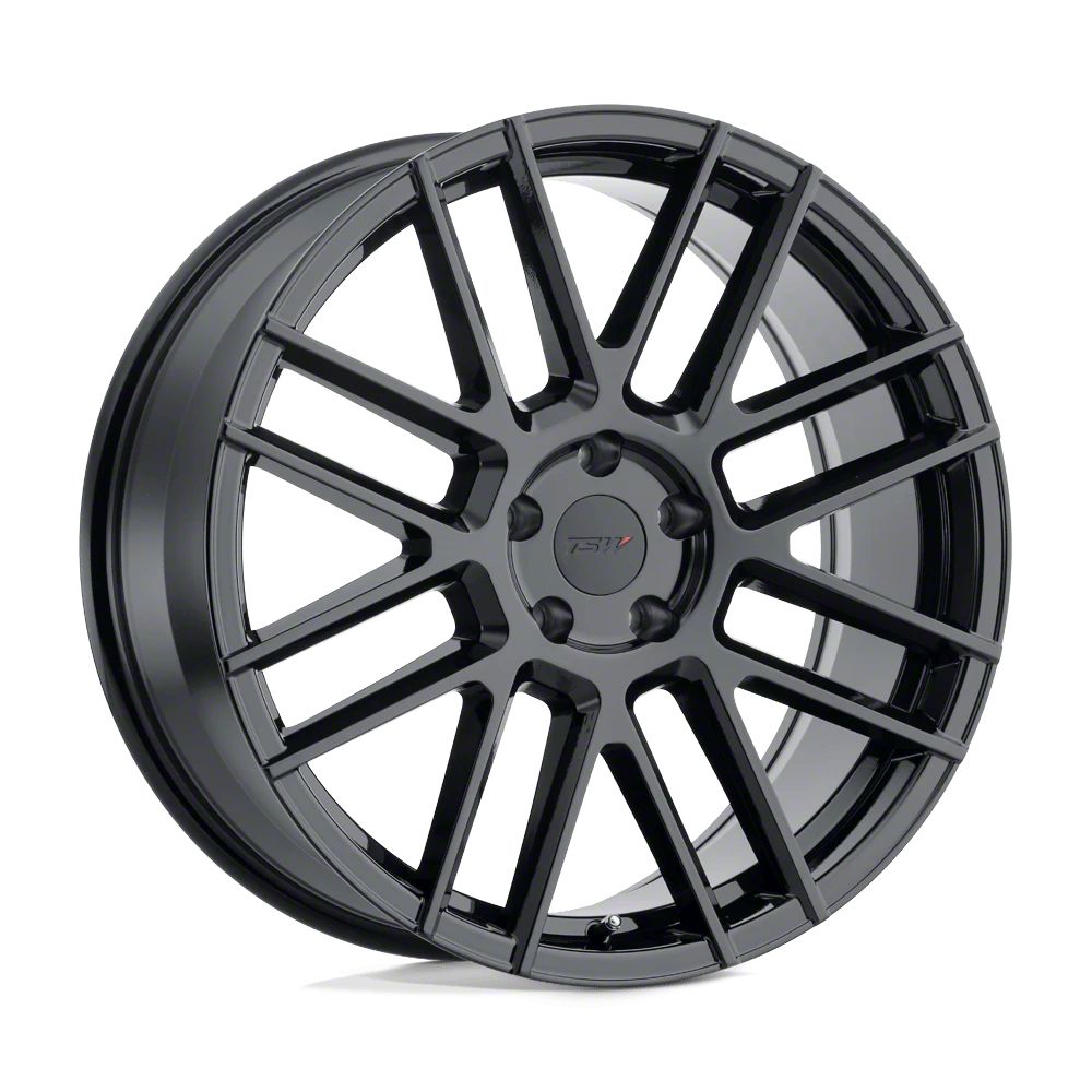 TSW Mosport Gloss Black Wheel; 20x8.5 The TSW Mosport Gloss Black Wheel combines a sleek, sophisticated design with premium construction that enhances the visual appeal and complements a wide range of vehicle styles. This wheel is perfect for those seeking to make a bold statement while maintaining elegance and robustness.