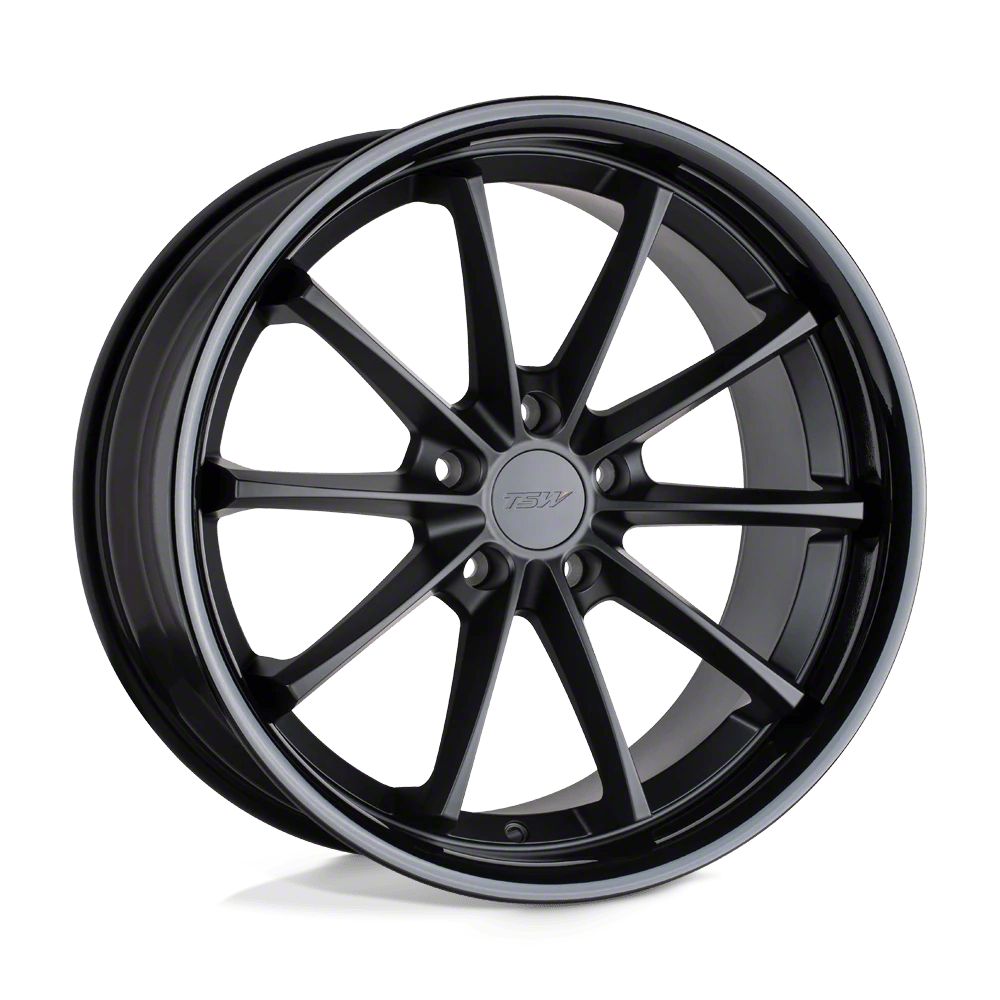 TSW Sweep Matte Black with Gloss Black Lip Wheel; 18x8.5 The TSW Sweep Matte Black with Gloss Black Lip Wheel combines a sleek, sophisticated design with premium construction that enhances the visual appeal and complements a wide range of vehicle styles. This wheel is perfect for those seeking to make a bold statement while maintaining elegance and robustness.