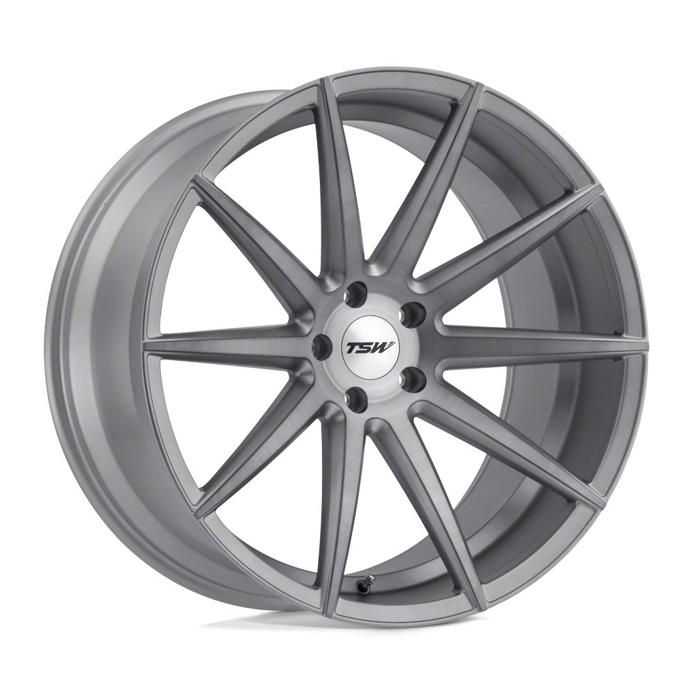 TSW Clypse Titanium with Matte Brushed Face Wheel; 20x10.5; 25mm Offset is a perfect blend of style and rugged design, making it a standout choice for those looking to enhance their vehicle's aesthetic appeal. Its bold, dark metallic finish pairs seamlessly with a wide variety of vehicle styles, offering both modernity and durability. Built by TSW, this wheel is designed to elevate your vehicle's appearance with its robust presence.