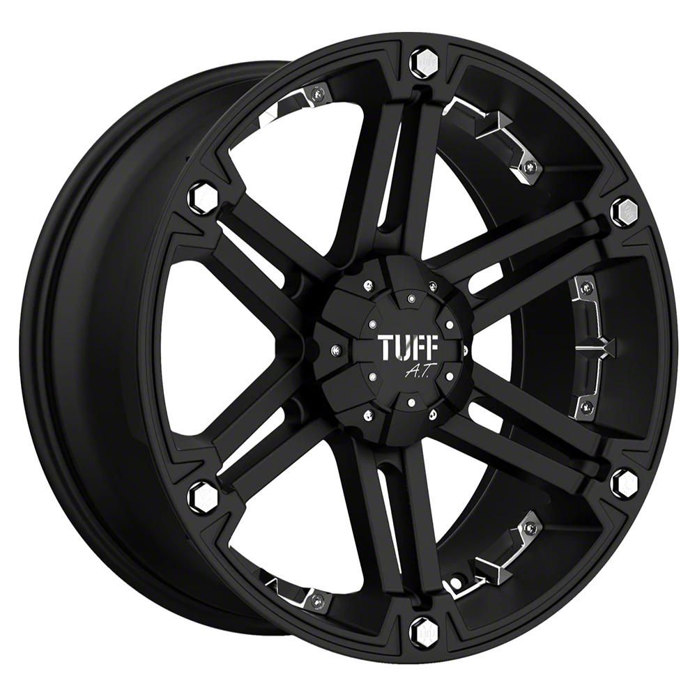 Tuff A.T. T01 Flat Black with Chrome Inserts Wheel; 17x8 The Tuff A.T. T01 Flat Black with Chrome Inserts Wheel combines a sleek, sophisticated design with premium construction that enhances the visual appeal and complements a wide range of vehicle styles. This wheel is perfect for those seeking to make a bold statement while maintaining elegance and robustness.