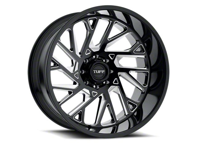 Tuff A.T. T4B Gloss Black with Milled Spokes Wheel; 26x14 The Tuff A.T. T4B Gloss Black with Milled Spokes Wheel combines a sleek, sophisticated design with premium construction that enhances the visual appeal and complements a wide range of vehicle styles. This wheel is perfect for those seeking to make a bold statement while maintaining elegance and robustness.
