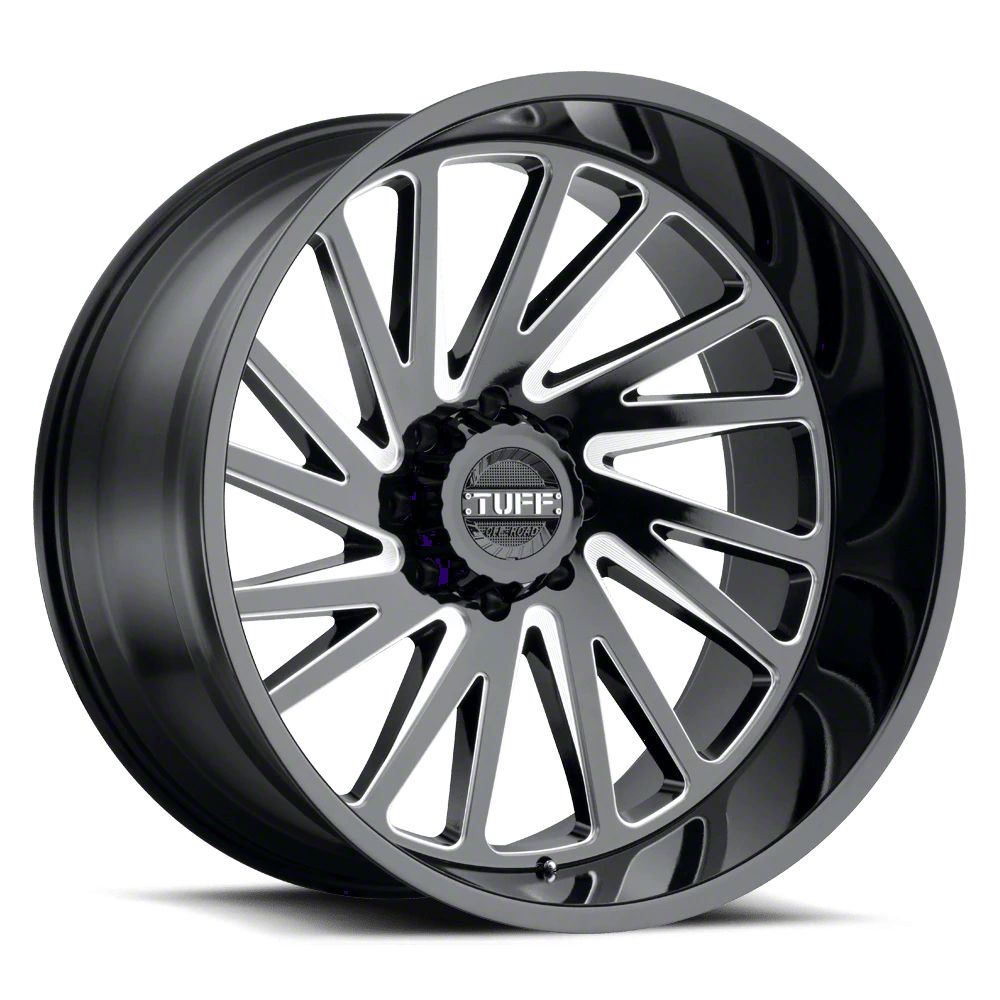 The 22x12 Tuff A.T. T2A Gloss Black with Milled Spokes Wheel is completed in a high-quality gloss black finish with milled accents for an aggressive appearance that will turn heads. This wheel features a durable clear coat that stands up to the hazards of everyday driving.