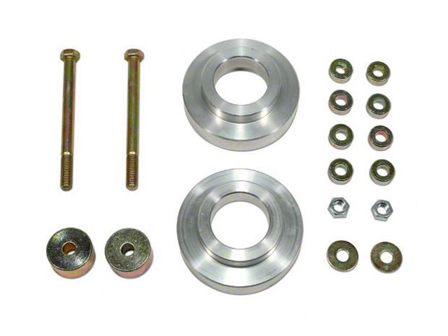 Construction and Appearance. Made in the USA, this leveling kit is expertly crafted from premium billet aluminum for exceptional strength and durability. The raw metal finish highlights its rugged construction, ensuring long-lasting performance and resistance to corrosion.