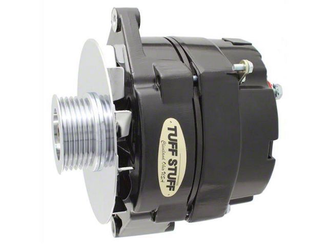 Description. All Tuff Stuff alternators are hand built in Cleveland, Ohio and are tested to meet or exceed OEM specifications. All Tuff Stuff alternators are made from 100% new components and carry a one year limited warranty. Tuff Stuff has alternator applications for virtually all muscle cars, hot rods, customs and light trucks in just about every finish imaginable. Available in chrome plated, polished aluminum, powder coated and plain as cast finishes. All alternators are for 12 volt, negative ground systems, except where noted.