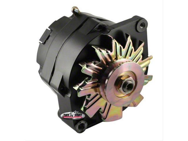 Description. All Tuff Stuff alternators are hand built in Cleveland, Ohio and are tested to meet or exceed OEM specifications. All Tuff Stuff alternators are made from 100% new components and carry a one year limited warranty. Tuff Stuff has alternator applications for virtually all muscle cars, hot rods, customs and light trucks in just about every finish imaginable. Available in chrome plated, polished aluminum, powder coated and plain as cast finishes. All alternators are for 12 volt, negative ground systems, except where noted.