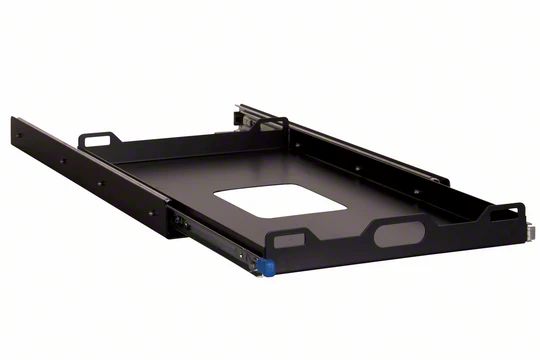 Secure Cooler Storage. Made to provide a secure and convenient sliding access tray to your coolers, fridges, or freezers, this Tuff Stuff Overland Refrigerator/Cargo Organization Slider can hold up to 220 pounds of weight. Using precision-cut ball bearing sliders, this slider can load 55-quart fridges easily and has quick-release latches in times of emergency.