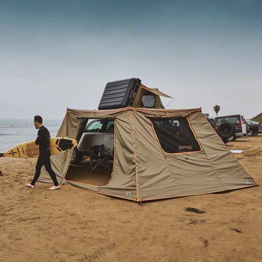 Portable Outdoor Comfort. Enhance your outdoor adventures with the Tuff Stuff Overland 270-Degree Compact Shade Wall Pack; 1-Door and 1-Wall. This practical and durable shade solution is perfect for campers, off-road enthusiasts, and anyone who enjoys spending time outdoors. It offers a 270-degree coverage area, providing ample shade and protection from the elements. Whether you're shielding yourself from the hot sun, a sudden downpour, or a strong breeze, this shade wall pack ensures you can enjoy your outdoor activities in comfort.