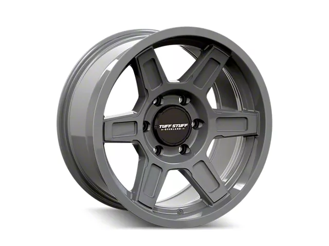 Tuff Stuff Overland Ascent Gloss Grey Wheel; 17x8.5; 0mm Offset is a perfect blend of style and rugged design, making it a standout choice for those looking to enhance their vehicle's aesthetic appeal. Its bold, dark metallic finish pairs seamlessly with a wide variety of vehicle styles, offering both modernity and durability. Built by Tuff Stuff Overland, this wheel is designed to elevate your vehicle's appearance with its robust presence.