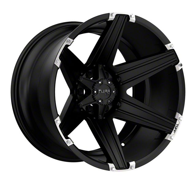 Tuff A.T. T12 Satin Black with Brushed Inserts 6-Lug Wheel; 20x10; -19mm Offset exudes sophistication with its finish, offering a sleek and modern appeal to any vehicle it adorns. The design is meticulously crafted to enhance the aesthetic of your vehicle, giving it a distinctive and upscale look. Perfect for those seeking to elevate their vehicle's style, this wheel blends seamlessly with both contemporary and classic vehicle designs, making it a versatile choice for a wide range of vehicles. Its robust construction ensures durability, making it a reliable choice for drivers who value both style and quality.