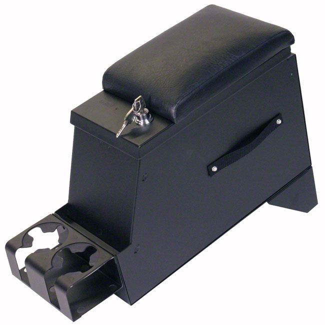 This high security 16 gauge steel console features Tuffy's patented pushbutton latch system. For safety and convenience while operating the vehicle, the lid also latches closed without having to be locked. It has a spacious compartment for mounting a CD changer, storing tools, electronic equipment, cellular phones, and other valuables. Rubber floor mat is included; other accessories are available.