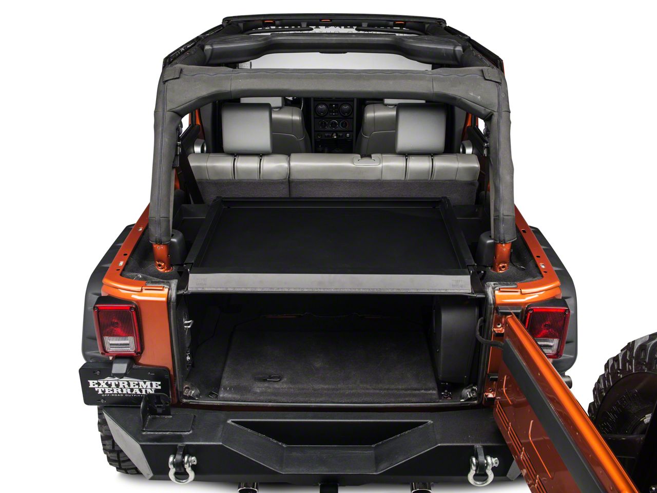 Storage Benefits. A Tuffy Security Deck Enclosure can transform your JK's rear cargo hold into a weather-tight fortress. With the load-bearing lid down, you can store large items on top of the Tuffy Security Deck Enclosure. The lid can also be quickly removed without tools, allowing you to carry large items. You can store smaller items on either side of the lid in two deep storage wells.