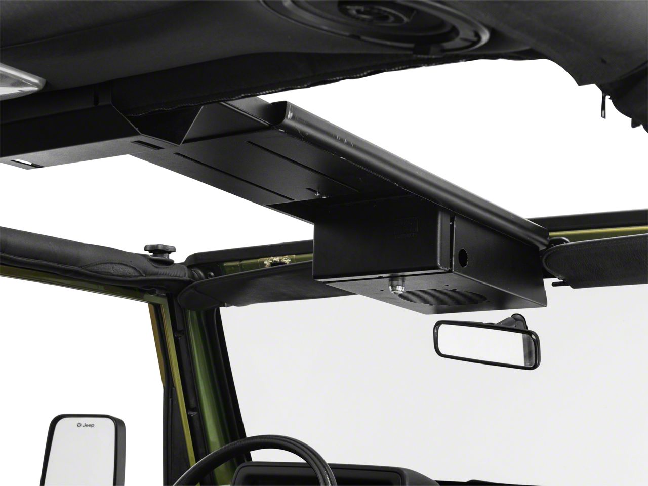 Storage Benefits. The Tuffy Single Compartment Overhead Console offers a lockable, weatherproof mounting for your stereo, scanner, CB radio or other electronic device. It has a pre-punched hole for a CB mic, and a 4-inch speaker grille. The locking compartment door has a weather-proof seal, and it swings up, out of the way, for easy operation of your electronic device. Installing the Tuffy Single Compartment Overhead Console is as easy as expanding it, then bolting it into place. There's also a special bracket included to make installing a DIN stereo or CB radio simple and hassle-free.