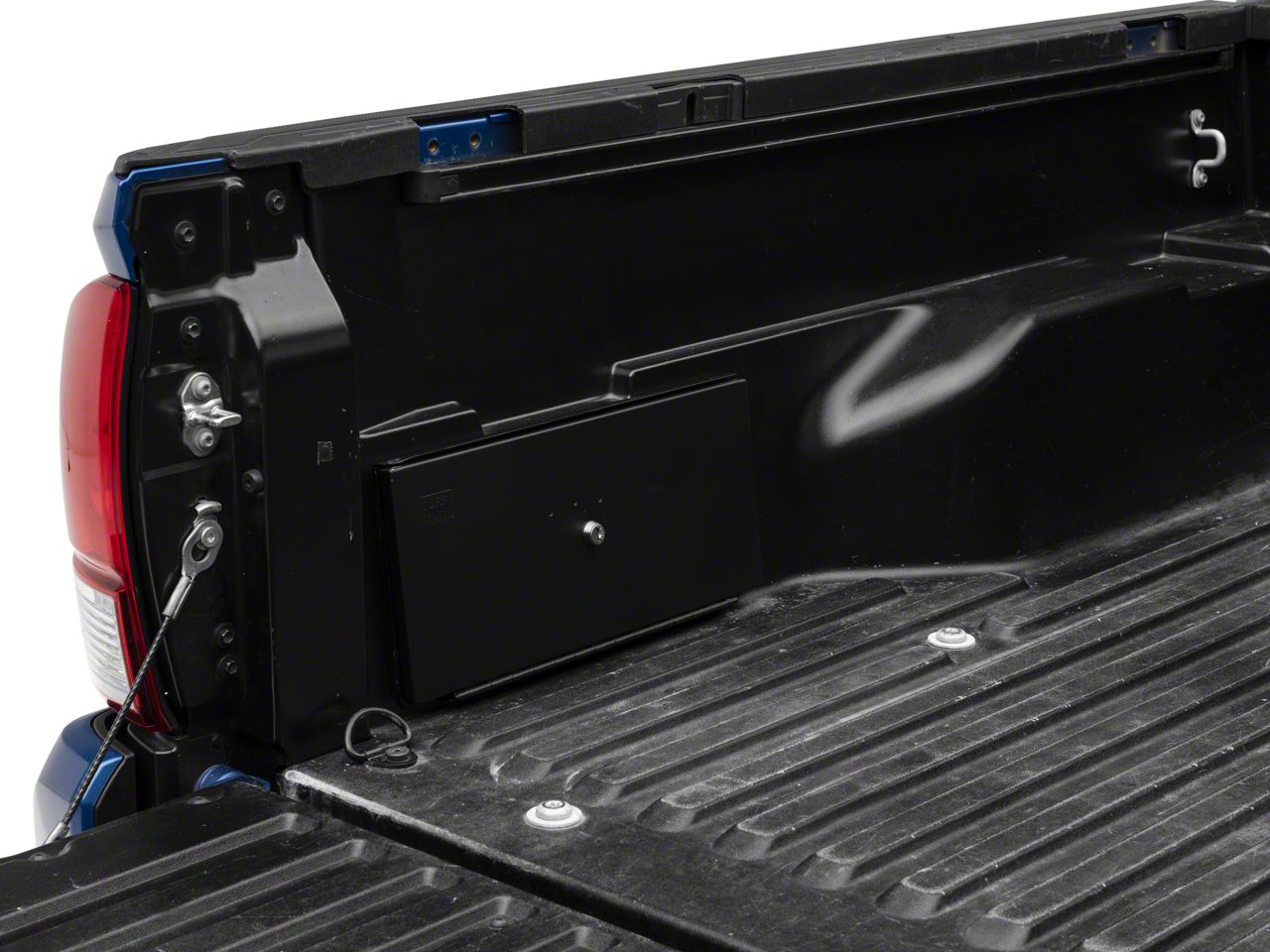 Welded 16-Gauge Steel Construction. Unlike your Tacoma’s plastic storage unit, this Tuffy Bed Security Lockbox is constructed out of heavy-duty, 16-gauge welded steel. This helps the lockbox stand-up to extreme weather conditions while keeping your belongings safe. To keep the lockbox safe from corrosion and rust, Tuffy applies a special, black textured powder coated finish.
