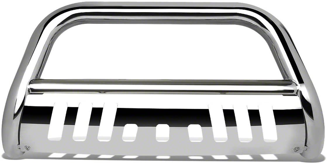Highly Durable Carbon Steel. This 3-Inch Bull Bar provides exceptional front-end durability and lasting performance with its heavy-duty construction. It is made of industrial-grade carbon steel with a stainless steel skid plate for maximum lower front protection against road hazards. This bull bar also features a high-quality, chrome finish that is resistant to corrosion and adds a gleaming appeal to your vehicle.