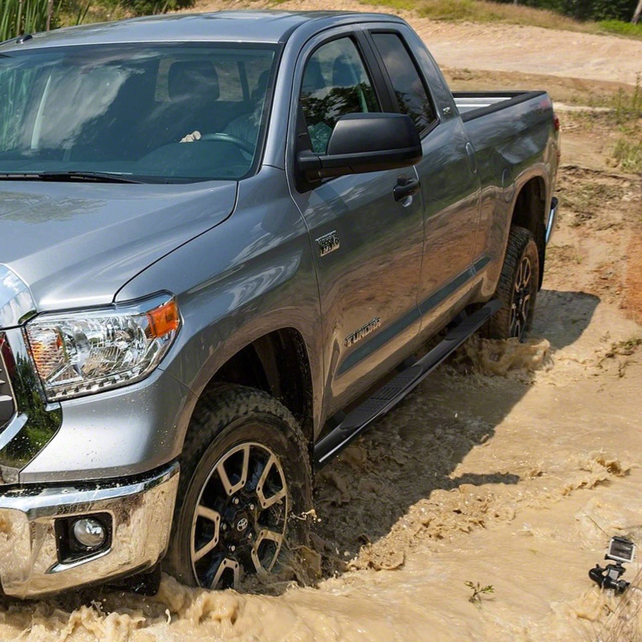 Application. This pair of 4-Inch Oval Black Side Step Bars is designed by Spec-D for all Toyota Tundra models.