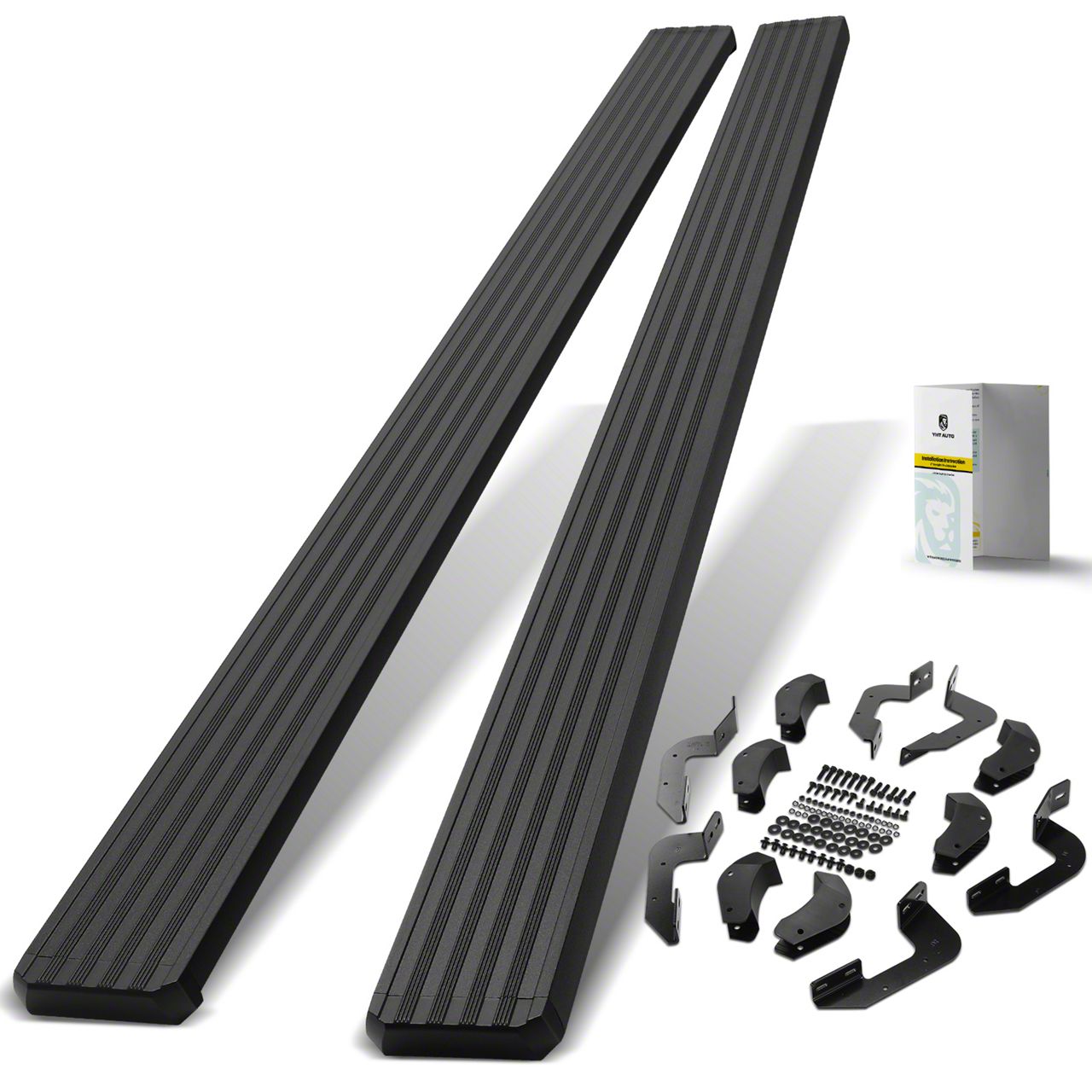 Installation. The running boards come with mounting brackets and installation hardware, allowing for a straightforward bolt-on installation. No drilling is required, as they are designed to use the factory mounting points for a quick and secure fit.
