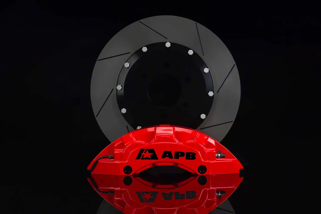 The Complete Kit. This big brake kit consists of slotted 16-inch rotors. It has a vented design to allow more heat dissipation and is GEOMET-coated for rust protection. The red calipers included are 6-piston and made with strong but lightweight forged aluminum. These forged calipers are double-sealed with oil and dust seals for leak and damage protection during off-roading and the multi-piston caliper has a sturdier clamping force when braking. The larger-than-factory-sized brake pads allow for more contact surfaces thus more braking power. And lastly, the stainless steel brackets are designed for heavy-duty activities.