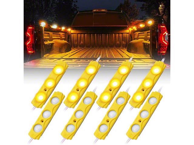 Application. This Amber 8-Led Rock Light Pod Truck Bed Lighting Kit is engineered to universally fit Toyota Tundra models.