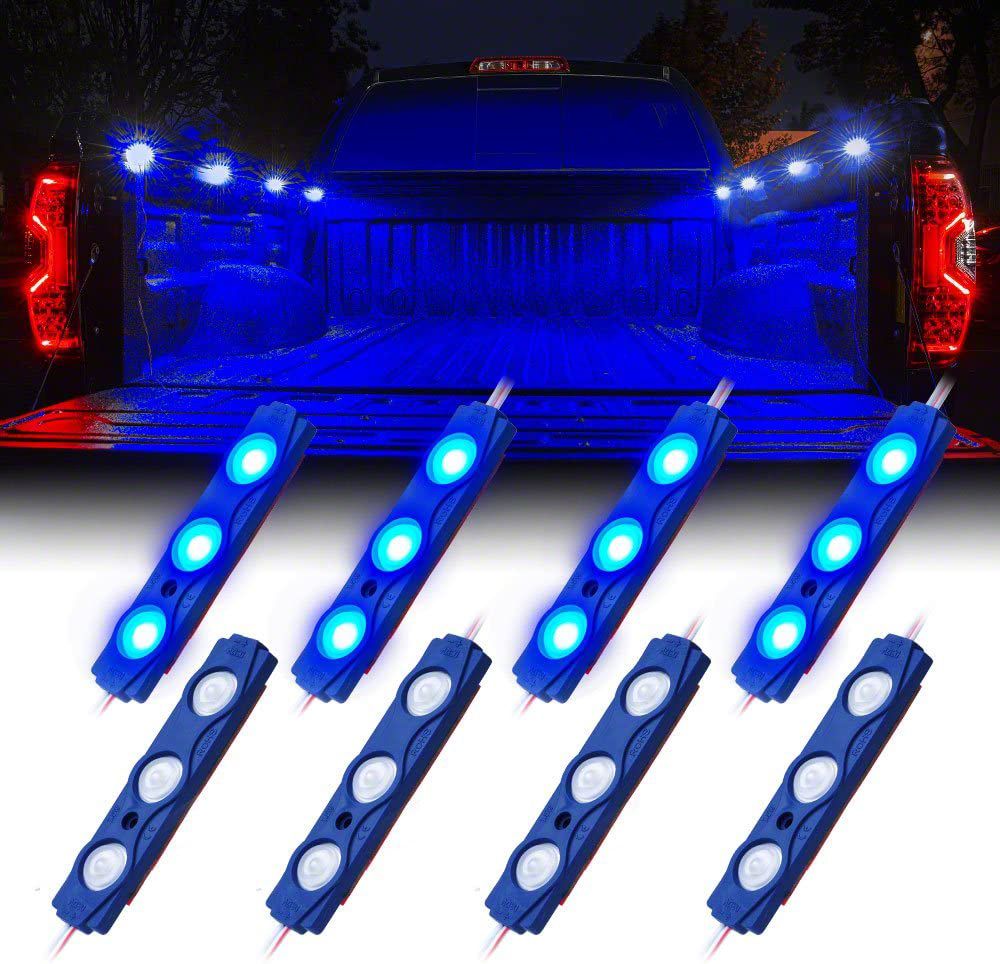 Improves Truck Bed Illumination. Brighten up your truck bed by installing this Blue 8-LED Rock Light Pod Truck Bed Lighting Kit. Featuring 8 rock light pods, this kit lets you see everything in your truck bed more clearly, reducing the risks of tripping and other accidents. Moreover, this kit’s blue lighting adds an impressive and unique flair to your truck bed, making your ride stand out.
